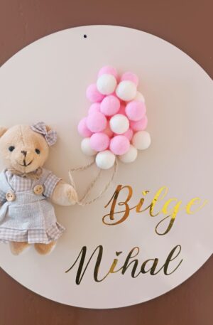 Bej Boyalı Erkek Bebek Ayıcıklı Mavi Balonlu Kapı İsimliği | Aksaray