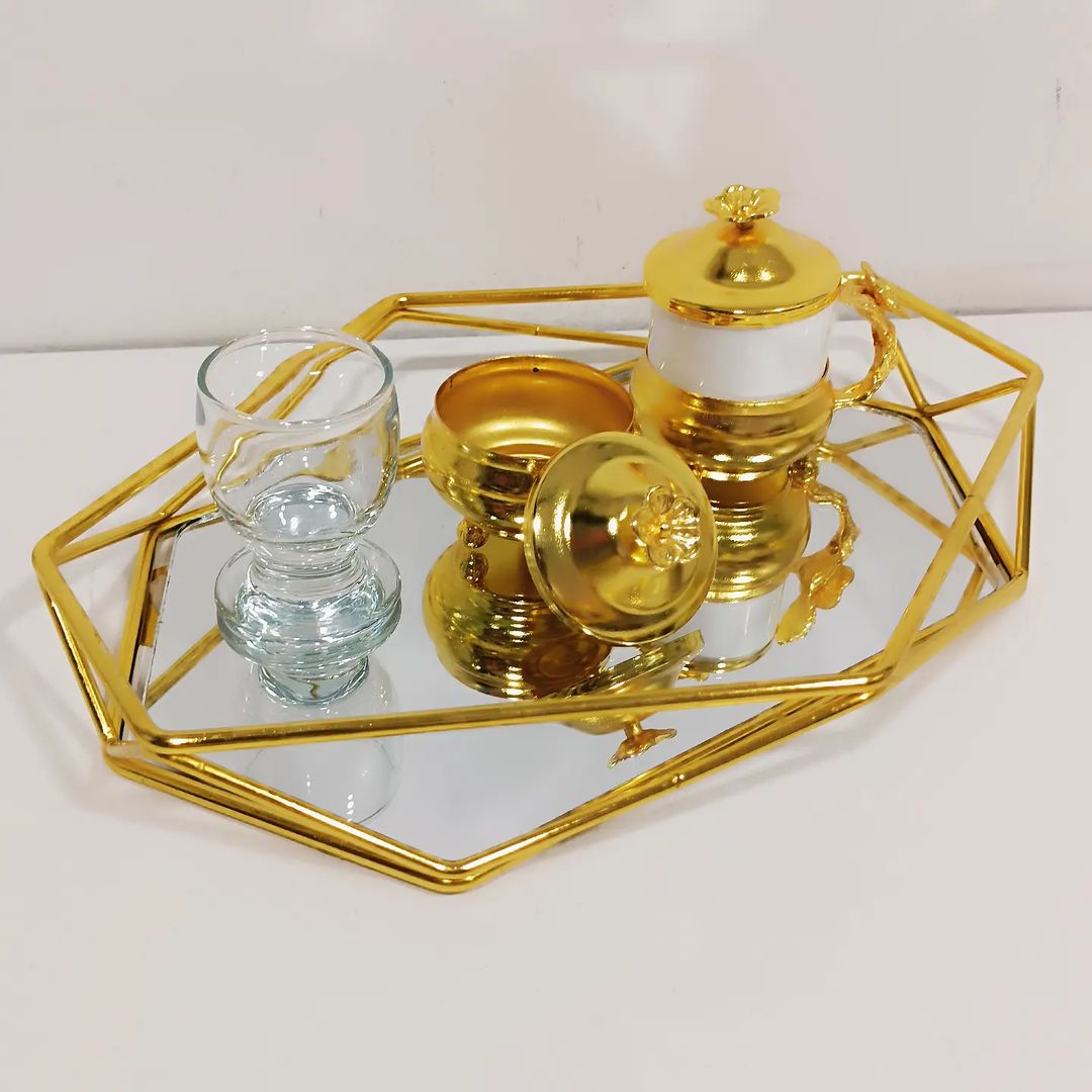 Gold Prizma Model İkili Söz Nişan Damat Kahvesi Tepsi Seti