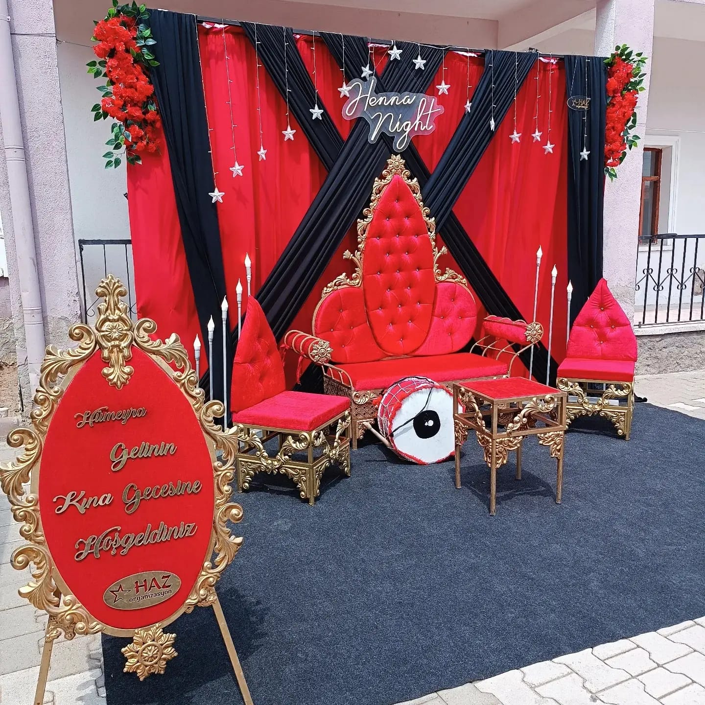 Kırmızı Siyah Çapraz Kına Tahtı Konsepti | Aksaray